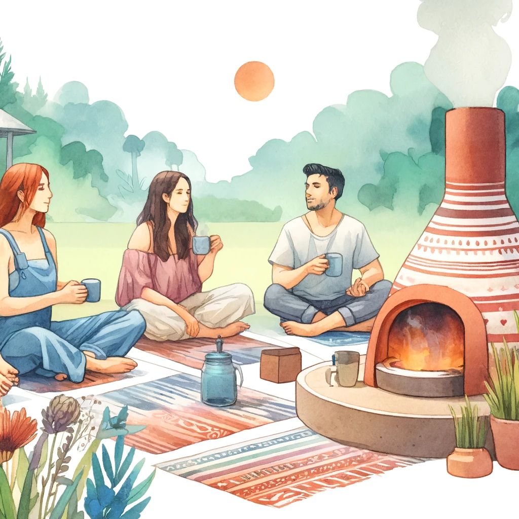 - Manejo del Calor y el Vapor: El calor dentro del temazcal puede ser intenso. Escucha a tu cuerpo y si necesitas salir, házlo durante las pausas entre las puertas. Recuerda que es normal sentir incomodidad al principio, pero la respiración profunda y la concentración pueden ayudarte a manejar la experiencia. Si necesitas apoyo por favor solicítalo al guía.